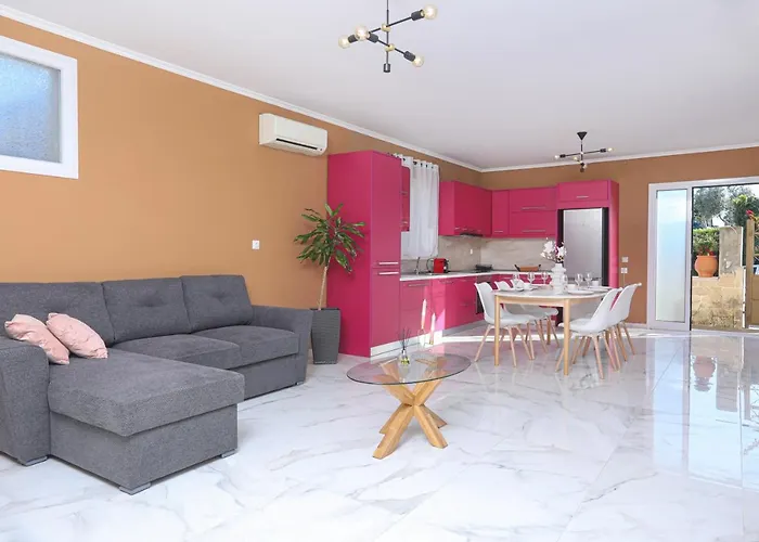Az apartman önellátó felszereltséggel, például teljesen felszerelt konyhával rendelkezik, valamint étkezővel és kültéri étkezőhellyel a vendégek kényelméért. A vendégek a Korfu nemzetkozi repülőtértől 35 km-re lesznek elszállásolva.